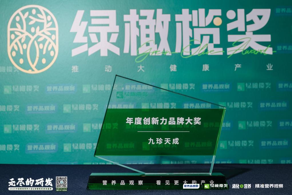 9 月24日,「无尽的研发・中国精准营养大会暨绿橄榄奖颁奖盛典」在杭州落幕。这场汇聚营养品行业龙头企业、科研机构的盛会中,珍稀仙草滋补品牌“九珍天成”凭借深厚的文化传承与突出的创新实践,斩获「年度创新力品牌大奖」,其核心产品 “参百粹人参发酵浓缩液” 同步引发行业关注。
